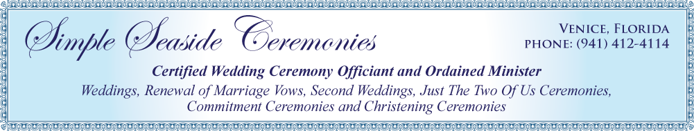 Do you want a romantic setting for your wedding or renewal of vows? Then get married in Venice... Venice, Florida! (On the Gulf Coast, north of Fort Myers, and south of Sarasota).
